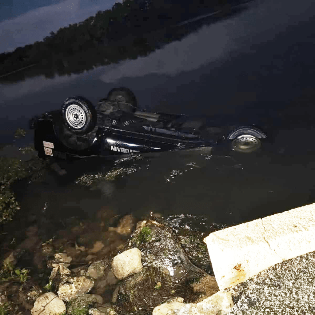 De acuerdo con los primeros reportes, el conductor intentó esquivar a un lagarto que se encontraba sobre la vía, lo que provocó que perdiera el control y saliera del camino. La unidad quedó con el toldo hacia abajo en el área pantanosa.