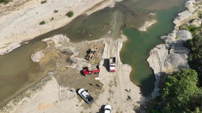 Durante el “Operativo en materia de impacto ambiental contra el saqueo irregular de materiales pétreos”, inspectores de la dependencia, con apoyo de la Guardia Nacional, inspeccionaron cuatro bancos de extracción ubicados dentro del cauce del río.
