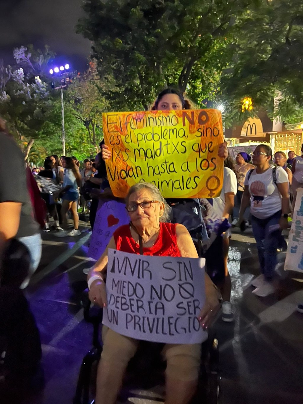 A diferencia de otros años, la marcha se caracterizó por un ambiente más incluyente. Hombres acompañaron a familiares, amigas o parejas, principalmente cuidando a niñas y niños que también formaron parte del recorrido. La presencia de infancias, mascotas y familias completas convirtió la movilización en un espacio diverso, donde distintas generaciones se encontraron para expresar sus causas.