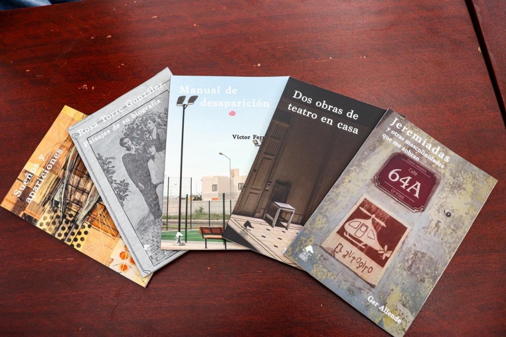 Dos obras de teatro en casa, de Xhail Espadas Rosa Torres González, paisajes de su biografía, de José Antonio Escalante Jeremiadas, de Ger Allende Sueños y apariciones, de Samia Farah Manual de desaparición, de Víctor Fernández