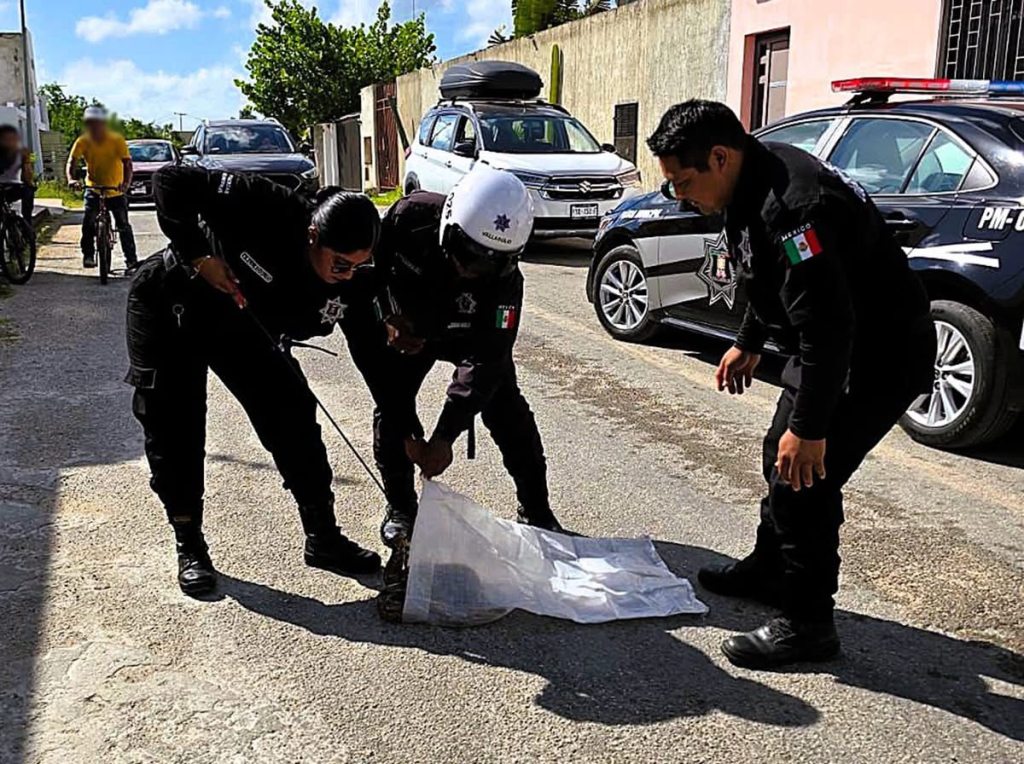 Elementos de la Policía Municipal aseguraron una boa constrictor que fue localizada sobre el pavimento en el fraccionamiento Vista Alegre, donde representaba un posible riesgo tanto para habitantes como para el propio animal.