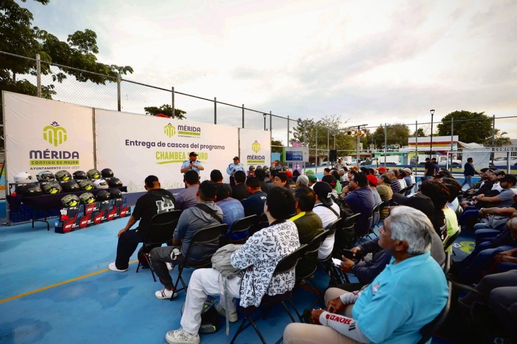 Con el objetivo de proteger a quienes utilizan la motocicleta como herramienta de trabajo, el Ayuntamiento de Mérida realizó la segunda entrega del año de cascos gratuitos con certificación DOT, beneficiando a 185 personas en la colonia Azcorra.