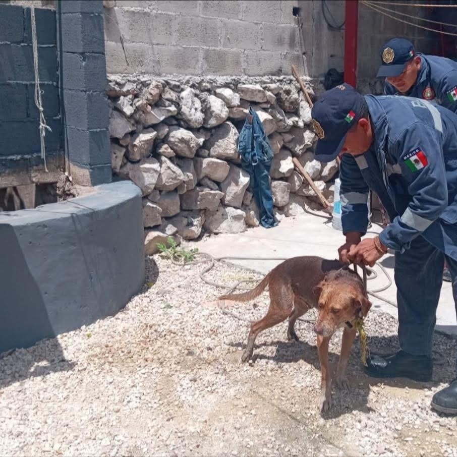 Un perrito fue rescatado con éxito luego de caer accidentalmente al fondo de un pozo en la colonia Santa Elena, en el municipio de Umán, Yucatán.