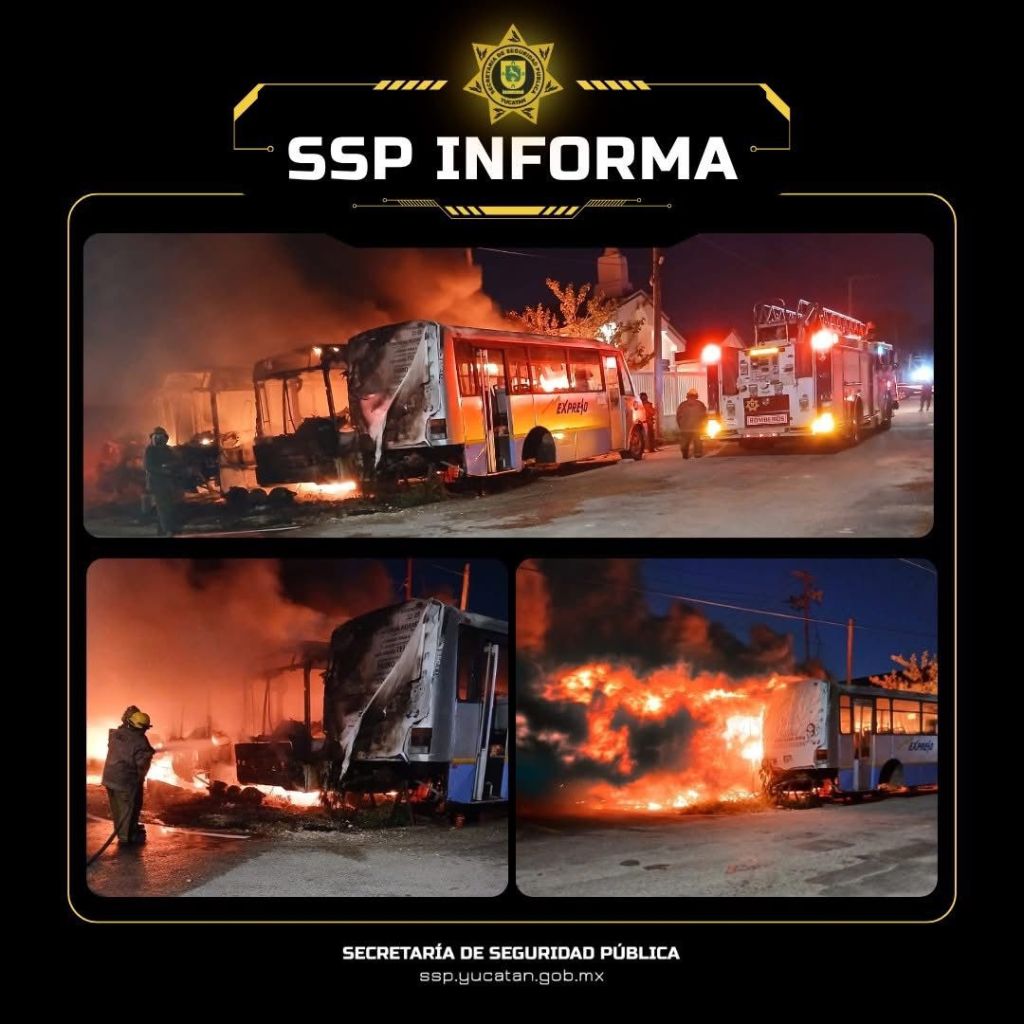 Al arribar al sitio, elementos estatales confirmaron que se trataba de aproximadamente cinco minibuses en desuso envueltos en fuego, por lo que de inmediato se desplegó la intervención de bomberos de la SSP para el control de la situación.