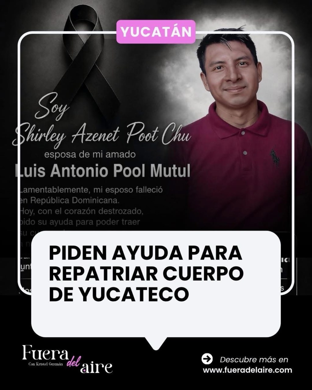 Se trata de Luis Antonio Pool Mutul, originario de la comisaría de Yaxcopoil, en el municipio de Umán, quien perdió la vida en Santo Domingo.